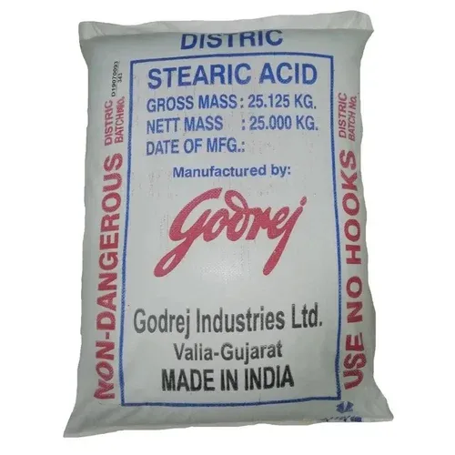 Stearic Acid by Godrej is a high-quality fatty acid widely used in a range of industries, including cosmetics, personal care, rubber, and plastics. This white, waxy solid is derived from vegetable oils, offering excellent emulsifying and thickening properties. In personal care products like lotions and creams, Stearic Acid acts as a stabilizer, improving texture and shelf-life. In the rubber industry, it functions as an activator in the vulcanization process. Additionally, Stearic Acid is used in the production of soaps, detergents, and candles, making it a versatile ingredient in various manufacturing processes.